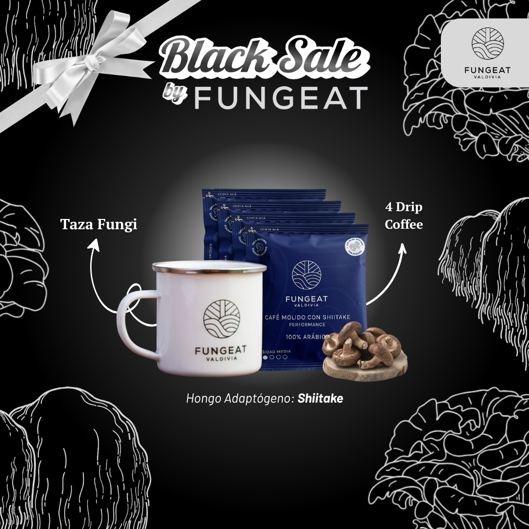 4 Drip Coffee Performance (10g c/u): Café molido con Shiitake, listo para filtrar en segundos y activar tu día.